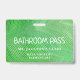 Stripe pattern sets behind an easy to read and update bathroom hall pass. Personalize the text to show the teacher and school name, as well as the purpose of the badge. Available in many other colors and designs.
