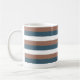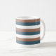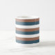 Do you like pretty mugs? This mug has a pattern of brown, teal and white stripes.