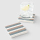 Stripe Pattern Mocha Brown Teal White Stone Coaster