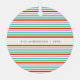 Simple, stylish candy stripe christmas tree ornament with a modern, minimalist semi-transparent overlay over a stylish, cute horizontal christmas candy stripe background in striking shades of red, green, blue and pink in a modern, 'scandi 'scandinavian design style. This versatile ornament can be personalized with your family name and year to make a truly unique and bespoke decoration for the festive season! | Part of our festive stripe collection, with a range of looks and styles, please take a look!