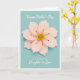 This card features a calm, muted aqua-blue background with a large stylized flower centered like a gentle gift ❤️. The bloom is made of many soft pink petals layered in smooth curves, with shading that shifts from deeper blush near the base to pale, airy tips. Fine outlines and faint shadows give the petals a lifted look, as if they’re leaning closer in a tender, affectionate gesture. In the middle, a textured cluster of tiny yellow-orange dots forms the flower’s core, with a few slender dark filaments reaching outward for contrast. Near the top, a short line of white text sits lightly above the illustration, like a quiet whisper of celebration. Below the flower, a second line of white text is placed neatly, offering a warm note of appreciation without crowding the design 🌼. A slim white border frames the entire scene, with the soft pink petals standing out against the cool aqua field.