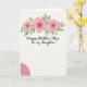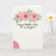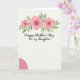 This card features a soft watercolor floral arch crowning the top, with three rosy pink blossoms shaded in gentle gradients and tiny green centers nestled among slender sage leaves and small buds. The creamy white background lets the pinks and greens feel tender and romantic, like a quiet hug shared between family members ❤️. Diffused lighting and a faint linen-like texture add a calm, intimate atmosphere without distracting from the main design. Centered within the arch, the message reads “Happy Mother’s Day to my Daughter!” in a flowing, cursive-style font. The text appears in a dark gray tone and sits slightly above the middle, leaving comfortable space around it. A partial solid pink circle rests in the lower left, echoing the flower color and adding a gentle modern contrast 🌼. The arch curves smoothly overhead while the pink circle is cropped by the edge, creating an off-corner accent.