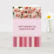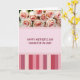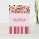 The front design shows a three-part layout that blends soft florals, a sweet message, and a modern pattern. At the top, a clustered bouquet of pale pink blooms sits close together like a gentle embrace, with petals fading from creamy edges into blush centers that suggest quiet affection ❤️. The lighting is soft and diffused, giving the flowers a velvety, sculpted look against a light background. In the middle section, a pastel pink panel holds the main text centered on the page in deep burgundy lettering, making the words easy to read and warmly inviting. The message is placed with generous space around it, like a calm pause between the flowers above and the pattern below. At the bottom, vertical stripes in shades of rose through deep crimson line up in varying widths, adding energy while still feeling tender 🌼. A thin horizontal line separates the striped area from the message panel, keeping the sections neatly defined. The lower stripes alternate between lighter and darker reds, creating a rhythmic base beneath the soft pink center.