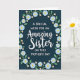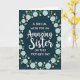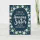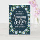 This card features a deep, muted teal background with a centered white greeting that immediately draws the eye ❤️. The main line of text sits in the middle, with a few key words in a flowing, cursive-like style for a softer, more intimate look. Around the message, an elliptical wreath of flowers and leaves forms a gentle frame, like a quiet embrace between close friends. Light blue, daisy-like blooms with sunny yellow centers are the most noticeable, and their slightly shaded petals give them a tender, cared-for feel. Smaller white star-shaped flowers tuck between the larger blossoms, adding little sparks of brightness 🌼. Fresh green leaves curl and overlap throughout the border, creating a sense of closeness and connection around the words. The white lettering stays crisp against the dark background, with the text clearly centered and evenly spaced. The floral garland wraps fully around the message, with blue petals, yellow centers, white mini-blooms, and green leaves forming a balanced oval frame.
