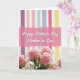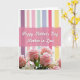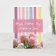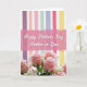 Designed with soft blush-pink and creamy white roses gathered along the lower portion, the card shows petals opening gently in a way that feels like a quiet embrace ❤️. A warm, glowing light falls across the blooms, bringing out velvety textures and a tender, affectionate mood. Across the center sits a horizontal band in pale pink with a lightly brushed look, creating a calm space between the flowers and the background. The main message is placed on that band in a flowing letter style, printed in a darker pink so it stands out clearly. Above the band, the background shifts into vertical stripes that feel upbeat yet soothing, like a friendly celebration shared close-up. The stripes alternate lavender, mint green, sunny yellow, and rich pink tones, adding a bright contrast to the classic roses 🌼. The flowers are sharply detailed in the foreground while the striped backdrop is slightly softened, and the center band runs straight across with the text neatly centered.