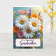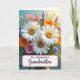 This card features a close-up bouquet scene that feels like friends leaning in close, with three white daisy-like blooms at the center and a gentle, affectionate softness in the way their petals overlap ❤️. Their round centers glow golden yellow with a hint of green, giving the middle of the design a warm focal point. Around them, smaller flowers in bright orange, deep pink, and light purple cluster together like a cheerful group gathered for a special moment. Wisps of green leaves and stems weave between the blossoms, adding natural texture and a fresh garden look 🌼. The background fades into a smooth, blurred turquoise, keeping attention on the crisp petals in the foreground. Near the bottom, a neatly framed message sits in flowing lettering, set in a darker tone that stands out against the lighter area beneath the flowers. The frame line around the text is thin and subtle, helping the words feel grounded without taking over the artwork. The orange and pink blooms sit slightly off to the sides, while the three white flowers remain centered against the turquoise blur.