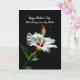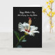 This greeting card features a luminous white flower set against a deep black background, like a quiet scene meant for a close bond ❤️. The bloom sits near the lower center, its wide petals opening to reveal a small center brushed with red and soft yellow that feels tender and inviting. A single stamen rises from the middle with orange tips and a deeper red top, drawing the eye the way someone’s gaze lingers on a loved one. Soft, angled lighting highlights gentle ripples and faint veins in the petals, adding depth and a calm, intimate mood. In the lower left, a few green leaves appear slightly out of focus, as if they’re leaning in like supportive friends 🌼. Near the top, a message in thin white lettering reads “Happy Mother’s Day With all of my Love, Step Mother,” centered and easy to spot against the dark space. The words are arranged in stacked lines, with the main greeting larger and the “With all of my Love, Step Mother” line smaller beneath it. Two tiny decorative marks sit near the text, and the flower’s petals glow softly against the black field.