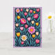 This design shows a tall rectangular panel filled with stylized flowers and leafy stems, arranged like a repeating garden pattern. Against a deep near-black background, the blossoms seem to glow, as if they’re leaning in close to share a quiet secret ❤️. Petals move through soft pinks, deep fuchsia, warm coral, creamy white, and bright yellow, creating a cozy, romantic contrast with the dark setting. The leaves and stems stretch upward in teal and deep blue-green, giving the scene a calm, steady rhythm like two friends walking side by side 🌼. A short greeting sits near the top in small white lettering, while a second line appears near the bottom in the same color to balance the layout. A thin white border outlines the botanical panel, and a pale lavender frame surrounds it to keep the composition neat and focused. The flowers have clear outlines and flat, luminous color areas that make each bloom stand out crisply within the dark field. A pale lavender frame encloses the central panel, separated by a fine white border.