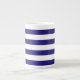 Collect a set of contemporary designed bone china coffee mugs to use for yourself or give as a gift. Mix and match styles and colors for an eclectic feel. Coffee mugs makes a nice housewarming gift or wedding gift. Royal blue and white stripes.
