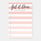 Chic yet whimsical striped post-it notes in ombre pink and white feature "get it done" at the top in trendy brush lettered typography and your name or monogram beneath, with numbered lines 1-10 to keep track of all your most important tasks.