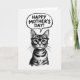 This design shows a black-and-white illustration of a striped house cat shown from the chest up, with a sweet, attentive gaze that feels like it’s locking eyes with someone it adores ❤️. Dark-rimmed glasses sit across its nose, giving the cat a studious look, while the fur alternates between charcoal tones and bright white highlights for crisp contrast. Fine whiskers fan outward and the large eyes behind the lenses add a gentle, affectionate intensity, like a quiet moment shared between close friends. Above the cat, a loosely drawn speech bubble floats near the top area, its uneven outline adding a casual, doodled touch. Inside the bubble, rounded bold lettering spells out a celebratory greeting in dark ink, centered so it reads clearly at a glance 🌼. The rest of the card stays plain white, leaving plenty of open space around the cat and the bubble so the linework stands out. The cat’s stripes, glasses frames, and the speech-bubble text are all rendered in deep black against the bright white background.