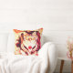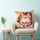 Striped Cat Art with Floral Background Throw Pillow
