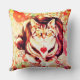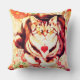 Striped cat art on colorful floral background throw pillow.