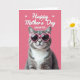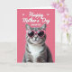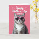 This greeting card features a close-up portrait of a grey-and-white striped cat looking straight at you, creating a friendly, flirty connection ❤️. The cat’s fur is speckled and detailed, with a bright white chest and muzzle that stand out against a rich magenta background. Heart-shaped pink glasses sit on its face, catching a small highlight and giving the cat a cheeky, affectionate look, like it’s posing for someone it adores. The cat fills most of the space, keeping the focus on its face and those sweet heart frames. Near the top, a short message appears in white lettering, centered above the cat’s head. Small white heart icons sit near the text, echoing the shape of the glasses and adding a gentle romantic touch 🌼. The overall layout is simple and striking, with the magenta field behind the cat remaining smooth and uninterrupted. The pink heart glasses are bubblegum-toned, with rounded edges and a glossy shine against the saturated backdrop.