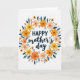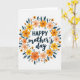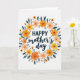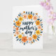 This greeting card features a circular floral wreath that wraps around a warm Mother’s Day message with an affectionate, close-to-the-heart feel ❤️. The wreath is built from stylized blossoms in sunny yellow, soft coral orange, and gentle peach, arranged like a friendly bouquet offered with a tender smile. Deep teal, elongated leaves weave between the flowers, adding contrast and a calm, steady tone that makes the brighter petals feel even more welcoming. In the center, the text reads “HAPPY mother’s day,” with “HAPPY” in bold uppercase above and “mother’s day” in a flowing, cursive-like style beneath. The lettering appears in a dark tone for easy reading, sitting neatly inside the open space of the wreath. Small, dark circular dots are sprinkled around the ring like tiny confetti, giving the design a light, celebratory sparkle 🌼. The background stays plain white so the wreath and text remain the main focus, and the floral circle looks evenly balanced all the way around. The final detail is the mix of tiny dark dots tucked between petals and leaves around the wreath.