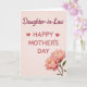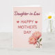 This card features a soft pale blush background that sets a gentle, affectionate mood ❤️. Near the top, a short line of flowing lettering in deep rose addresses the recipient with a sweet tone. Centered below it, the main congratulatory message appears in a simple sans-serif style, also in deep rose, making it easy to read at a glance. Small heart icons sit to either side of the central wording, like quiet little nods of closeness and care. The open space around the text feels calm, like a pause where you can almost picture two friends sharing a warm look. In the lower right, two large blossoms in layered pink tones lean together, their petals shaded darker toward the centers and lighter at the edges 🌼. A few green leaves tuck behind the flowers, adding a natural contrast against the smooth blush backdrop.
