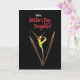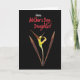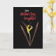 This card features a tall, vertical layout with a deep black background that makes the central flower-like form glow. In the middle, an unfurling bloom or dancer-shaped petal rises in bright yellow with a soft green tint, as if leaning upward with gentle affection ❤️. On either side, two long, leaf-like shapes in sienna and deep auburn stretch upward, framing the center like quiet companions in a close friendship. The colors shift subtly from sunny yellow to earthy reds, giving the plant a tender, living warmth against the dark field. Near the top, the word “Happy” appears in white, set above the rest of the message. Just below it, “Mother’s Day, Daughter!” is written in warm crimson, standing out clearly against the black background 🌼. The side leaves show fine texture and shading, while the glowing center has smooth curves and a soft gradient.