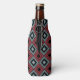 This bottle cooler has an art deco design of diamond shapes with diagonal lines, black diamonds, and colored diamonds in shades of blue and cranberry.