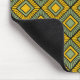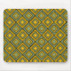 This mouse pad has an art deco design of diamond shapes with diagonal lines and colored diamonds in shades of green and yellow.