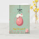 This design shows a calm, light-colored little animal with rounded ears and a long, curved tail resting on a large speckled pink egg, giving the scene a tender, friendly closeness 🐰. The egg hangs from the top edge by a dark ribbon that forms a neat bow, drawing your eye upward to the knot. Behind it, a soft gradient shifts from muted teal to mint green, creating a quiet spring backdrop. Small pink blossoms are scattered across the background like confetti, adding a gentle romantic touch without crowding the space 🌷. Along the bottom, a green band of stylized stems holds a cluster of pink flowers, as if the animal has settled into a cozy garden corner. Near the lower center, the message “Happy Easter my friend!” appears in yellow lettering, placed just above the greenery so it stands out against the cooler background. Off to the right, a smaller egg sits among the stems with alternating pink-and-white stripes and faint scalloped detailing. The shading stays soft, with the ribbon and bow appearing in a deep tone above the speckled egg.
