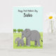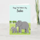 This card shows two gentle, grey, elephant-like animals in the foreground, with a tall adult standing close beside a smaller youngster as they lean toward each other with a tender, protective gaze ❤️. Behind them, rolling green hills stretch into the distance, leading to a thin row of neatly shaped trees under a wide, calm, pale-blue sky. The colors stay soft and simple, with muted greys for the animals, fresh greens for the landscape, and light blue overhead to keep the scene serene. Near the top, a flowing message is placed prominently across the sky area in a dark, ink-like color so it’s easy to read without overpowering the picture. The open space around the words makes the greeting feel airy, while the closeness of the pair adds a quiet sense of affection, like a warm friendship or family bond 🌼. Small touches bring them to life, including rounded ears, gentle curves along their backs, and light shading beneath their feet to ground them on the grass. Both figures have softly curved tusks, and the distant trees form a simple horizontal line along the horizon.