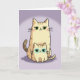 This card features two stylized cats centered on a soft gradient lavender background, drawn with rounded shapes and dark outlines. A taller cat stands behind with creamy fur and earthy brown stripes, its slightly lowered brows and faint rosy cheeks giving it a calm, watchful look. Its green eyes gaze forward steadily, like it’s quietly looking out for the smaller companion ❤️. Nestled in front, a smaller matching cat leans close, creating a cozy, protective pose that reads like close friendship. The little cat’s eyes are green with a bright cyan ring, making them look gently glowing and full of affection. Any text would sit neatly near the top in a light color that contrasts softly against the lavender, with a smaller line near the bottom in a deeper purple. The scene stays minimal and tender, with the two striped figures framed by the smooth lavender fade and their softly blushed cheeks 🌼.