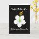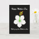 This card features a single, stylized flower centered on a deep black background, giving the scene a quiet, intimate feel ❤️. Five softly shaded white petals glow gently, like they’ve been lit from within, and their smooth curves create a calm, romantic focus. In the middle, a neon green center rises up, topped with small, round orange tips that add a lively contrast, like a warm touch in an otherwise serene space. Near the top, the words “Happy Mother’s Day” appear in flowing white lettering, spaced to sit above the bloom without crowding it. Lower on the design, a second line in white reads “With of my Love, Mother-in-Law,” placed beneath the flower as if speaking softly from a distance. The strong contrast between the bright flower and the dark background makes the message feel like a private note shared between close family, with a gentle, affectionate tone 🌼. The orange spheres sit clustered above the green center, standing out sharply against the white petals and black field.