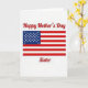 This card features a familiar national flag design centered on a wide white background, with red horizontal stripes alternating with white bands and a deep blue square in the upper left filled with rows of small white stars. Above the flag, the phrase “Happy Mother’s Day” appears in red, flowing lettering, placed near the top and spaced so it feels like a gentle greeting hovering over the image ❤️. Below the flag, the word “Sister” is printed in matching red, centered and set apart as a quiet dedication that reads like a close, affectionate nod. The strong red and blue tones against the white space give the layout a crisp, respectful look while still feeling warm and family-focused. The pairing of the celebratory greeting with “Sister” creates a sense of closeness, like a caring message shared between two people who know each other well 🌼. The stars are arranged in neat lines inside the blue corner, while the stripes run straight across the flag in even, consistent bands. The overall design keeps everything aligned down the middle, with red text above and below the flag and a bright white field surrounding it. The blue corner sits at the flag’s upper left, filled with evenly spaced white stars above the red-and-white stripes.