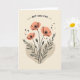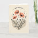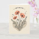 This greeting card features a soothing creamy background with a balanced botanical arrangement that feels like a quiet thank-you ❤️. Three stylized flowers in coral-peach stand close together on slender dark stems, their petals shaded with slightly deeper accents that suggest a tender, caring closeness. Curving branches sweep around them with elongated dark grey-green leaves, and two small buds hint at growing affection and steady support. A soft, irregular taupe shape sits behind the stems to gently ground the bouquet, like a calm backdrop to a warm relationship. Small scattered dots in black, red, and brown float around the flowers, adding light movement like little shared moments. Near the top, the words “BEST MOM EVER” appear in dark lettering, centered and underlined with two thin arched lines that echo the curves of the branches 🌼. The flowers are arranged vertically with the tallest bloom near the center and the dotted accents sprinkled loosely in the open space around them.