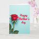 Designed with a tender, romantic touch, this card centers on a single deep red flower placed in the lower-left area, like a small offering meant for someone special ❤️. The petals open outward in soft layers, suggesting a velvety texture and a gentle, cared-for look. A sturdy green stem rises from below with a few crisp leaves, guiding your eye up toward the bloom as if lifting it forward. Behind it, a calm sky-blue background keeps the scene airy and quiet, letting the red flower stand out without feeling harsh. In the upper-right area, a short Mother’s Day message appears in red lettering, balanced against the open space and echoing the flower’s color. The words sit comfortably above the flower, giving the layout a sweet, affectionate rhythm, with a little 🌼 feeling tucked into the color contrast. A thin red border runs around all four edges, neatly framing the blue field and the flower. Share your Mother’s Day feelings with love and care, and enjoy how the fine red outline frames the soft blue background and the crimson bloom.