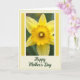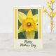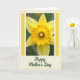 Designed with a luminous close-up of a yellow flower, the image fills the center with broad, gently curving outer petals in a soft buttercup tone, glowing as light passes through them. At the flower’s center, a deep golden, trumpet-like shape with a ruffled rim draws you in, like a gentle hug shared between close friends ❤️. A pale pistil peeks forward, adding a quiet, intimate detail that makes the bloom feel tender and alive. Behind it, a softly blurred green background suggests a calm garden setting, letting the yellows stand out without feeling harsh. The photo sits inside a crisp rectangular frame with slim vertical stripes in sunny yellow along the sides, adding a neat, cheerful structure 🌼. Around that, a wider cream border is dotted with small yellow spots, giving the layout a light, cozy finish. Centered beneath the framed photo, the words “Happy Mother’s Day” appear in deep emerald green, and the dotted cream border continues around the edges.