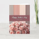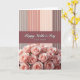 Designed with a tall, vertical layout, the card pairs soft florals with tidy graphic shapes to suggest a gentle closeness ❤️. The bottom third is packed with pale blush roses, their curled petals overlapping like a tender bouquet being held close. Just above the flowers, a wide horizontal band in deep, muted rose-pink stretches across the card, creating a calm focal point. Centered on that band is a short message in crisp white lettering, standing out clearly against the darker color. The top section is filled with vertical stripes in soft taupe, light peach, and deeper earth tones, giving the background a steady, comforting rhythm. Faint brighter streaks run through some stripes like soft sunbeams, adding a quiet glow that feels like a warm glance shared between close friends 🌼. The roses are clustered tightly along the lower edge, with the rose-pink band and white text sitting directly above them.