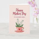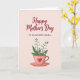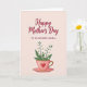 This greeting card features a soft digital illustration with a blush-toned background that sets a gentle, affectionate mood ❤️. Near the top, large flowing lettering in deep crimson shares a warm Mother’s Day message, drawing the eye first. Just beneath it, a smaller line in a simple, neat font adds a loving note to an older, cherished woman, like a quiet aside meant just for her. The lower half centers on a stylized pink teacup, hinting at cozy chats and close companionship. A thin golden rim circles the cup, and a bright red heart sits on the front like a tender symbol of care. From the cup rises a small bouquet with slender green stems, soft leaves, and clusters of tiny white, bell-shaped blossoms that feel like a gentle “thinking of you” 🌼. The teacup is rosy pink with a narrow gold rim and a red heart emblem, holding green stems topped with small white bell flowers.