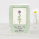 Designed with a calm, botanical look, the card centers on a single purple flower with a golden-yellow middle, standing tall on a slim green stem. Two matching green leaves sit to either side, giving the bloom a balanced, almost companionable presence, like a gentle nod between friends ❤️. The flower sits within a light cream rectangle, outlined by a thin charcoal border that creates a tidy, layered frame. Behind that, the background is a muted sage green with a soft, watercolor-style texture that feels quiet and romantic without being loud. Along the outer edge, the border looks slightly worn and uneven, adding an aged-paper touch. Beneath the framed flower, a short message appears in flowing cursive-style lettering, colored deep indigo for contrast. The words are centered under the image and spaced with plenty of breathing room, while the purple petals show subtle shading against the cream panel 🌼.