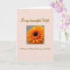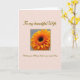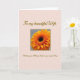 This greeting card features a large golden-orange flower centered inside a light gray panel edged with a thin gold border, drawing your eye straight to its dark, detailed middle. The petals fan outward like a gentle embrace, giving the bloom a romantic, close-to-the-heart feel ❤️. Around that panel, the background is blush pink with a faint repeating pattern that looks like tiny stars or scattered little blossoms. Near the top, a warm golden-brown line of flowing lettering reads “To My Beautiful Wife,” placed with plenty of breathing room above the flower. Below the bloom, matching golden-brown text reads “Wishing you all things lovely on your special day,” aligned neatly to balance the design. Soft lighting highlights the petal edges and the textured center, making the orange glow against the calmer gray and pink tones 🌼. The flower sits squarely in the middle of the gray section, with the top and bottom text framing it like a gentle border.