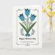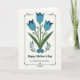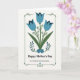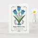 This Mother's Day card features three bell-shaped blossoms across the upper half, their petals shaded in soft blue with deeper indigo shadows that make them look gently folded like a caring embrace ❤️. Olive-green stems weave together below them, curling into thin tendrils and tiny dark-blue dots that feel like small, thoughtful touches between close family members. At the bottom, a clustered bouquet of smaller sapphire flowers sits snugly together, each with a white starburst center that adds a sweet, affectionate sparkle 🌼. A thin forest-green rectangular border frames the artwork, bending into little corner flourishes and dotted details that give it a cozy, folk-inspired look. Centered beneath the flowers, the words “Happy Mother’s Day” appear in a classic serif style in deep green, easy to read against the off-white background. Just below that, a lighter, flowing line of text reads “To a Wonderful Great Grandmother,” also centered and in a matching green tone. The off-white background leaves plenty of breathing room around the bouquet and lettering, and the corners of the border include small curved accents and dot patterns.