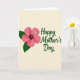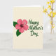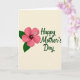 This design shows a pale cream, lightly textured background that feels like a quiet, cozy space for a loving note. On the left sits a large five-petaled flower in warm fuchsia, with a deep red heart-shaped center that hints at affection ❤️. A slim pistil rises from the middle and ends in tiny star-like white tips, giving the bloom a delicate, cared-for look. Two deep emerald leaves with fine veins rest beneath the flower, grounding it like a steady, supportive presence. On the right, the words “Happy Mother’s Day” appear in flowing cursive lettering, colored forest green, with the phrase set in the open space beside the flower. The placement creates a gentle back-and-forth between the blossom and the message, like a quiet exchange between close family members 👩. Soft light and subtle shading give the petals a slightly raised, paper-like depth against the creamy backdrop. The green text sits to the right of the fuchsia flower, with the leaves tucked just below on the left.