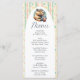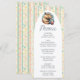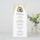 This pastel baby shower menu card features a funny capybara drinking bubble tea with colorful dotted stripes in soft tones. The playful design makes it a perfect personalized table detail.