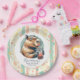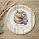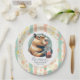 Striped Funny Capybara Custom Name Baby Shower Paper Plates