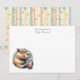 This pastel nursery note card features a funny capybara with bubble tea on a soft dotted stripe background in cream, green, orange and yellow. The playful design makes it a perfect personalized stationery piece.