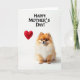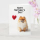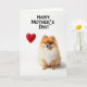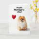 This card features a small, fluffy dog centered on a bright white background, its ginger-and-cream fur drawn with soft texture that makes it look ready for a gentle cuddle. The dog faces forward with wide dark eyes and a slightly lifted snout, giving it a sweet, affectionate look that feels like it’s waiting to be loved ❤️. Above the dog and a little to the left, a deep red heart floats with a plush-like texture, adding a romantic touch as if it’s drifting down toward the pup. Across the top of the design, the message “HAPPY MOTHER’S DAY!” is placed in black lettering, standing out sharply against the pale backdrop. The words sit like a header, leaving plenty of open space so your eye moves from the greeting down to the dog’s tender expression. The simple layout keeps the focus on the bond suggested between the warm-hearted symbol and the gentle animal, like a quiet moment of care and closeness 🌼. The red heart appears slightly raised and shaded, hovering near the upper-left area above the dog’s head.
