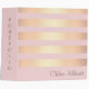 Customized Ring Binder/Portfolio/Photo Album: Trendy Faux Gold Metallic Striped Design/Subtle Rose Pink Background/Chocolate Brown Modern Typography Name Personalization