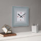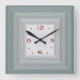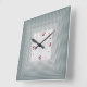 An illuminated effect of contoured stripes in grey and white,make an interesting square clock .The centre is white with red numerals.