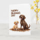 This design shows two cheerful dogs on a bright white background, standing close enough that their happy, open-mouthed grins feel shared like a friendly secret ❤️. A smaller dog with golden fur sits beside a larger adult dog with rich brown fur, and their shiny eyes and relaxed ears give them a tender, companionable look. Their coats are detailed with gentle shifts in tone that make the fur look soft and sunlit, as if they’ve just paused during an outdoor stroll. Under their paws, a light smear of earthy brown suggests damp soil or a muddy patch, adding a sweet hint of adventure 🌼. In the upper left area, a short message appears in thick brown lettering, set against the open white space so it’s easy to notice first. The roomy background keeps the focus on the pair, while the warm brown accents tie the text and the ground together. The smaller dog leans slightly toward the larger one, and both tongues peek out in matching, easygoing smiles. The only scenery detail is the soft, irregular brown brush of “mud” beneath their feet.