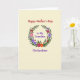This card features a calm, light cream background with a circular wreath of deep green leaves and stylized flowers that feel like a gentle hug ❤️. The blossoms are arranged in a lively mix of fuchsia, soft pink, purple, orange, and deep red, creating a cozy garden look that suggests caring attention and closeness. Near the top, the greeting “Happy Mother’s Day” sits centered in a deep red serif font, giving the layout a warm, celebratory anchor. Inside the wreath, the words “to My Grandma” appear in a deep violet typeface, tucked neatly into the open space like a quiet, affectionate note. Below the wreath, “The Gardener” is placed in the same violet color, balancing the design and nodding to someone who loves tending plants 🌼. The spacing between the top line, the center message, and the lower title keeps everything easy to read while letting the floral ring stay the main focus. The wreath itself forms a smooth circle, with layered leaves and clustered petals that alternate colors around the ring, set against the light cream canvas.