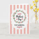 Designed with a scalloped white frame at the center, this digital illustration draws your eye to the main greeting in a sweet, affectionate way ❤️. Inside the frame, “Happy Mother’s Day” sits prominently in dark lettering, with a small red heart on each side like two quiet signs of love. A circular wreath of pink flowers with yellow centers and slim green leaves wraps around the words, giving the layout a gentle, caring feel. Below the main line, “TO MY WONDERFUL DAUGHTER” appears in smaller text, with “DAUGHTER” set in warm red, flowing letters that look like a tender emphasis. The mix of structured letter shapes and softer, flowing letters creates a friendly contrast, like a close hug between family members 👩. Behind everything, the background features vertical stripes that alternate between soft pastel pink and white, keeping the scene light and affectionate. The frame, wreath, and text are centered neatly, with the red hearts and red “DAUGHTER” standing out against the white space and pink-striped backdrop. The floral ring shows scattered pink petals, tiny yellow dots at the flower centers, and thin green stems curving evenly around the message.