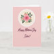 This card features a soft pastel pink background that sets a gentle, affectionate mood ❤️. Near the top center, a large circle with a thin white border frames a bouquet of pink roses and green leaves, like a quiet floral hug. A fully open rose sits in the middle with carefully shaded petals, while smaller buds gather close as if leaning toward one another. The inner circle has a creamy light tone that makes the flowers feel even more tender and close. Centered below the circle, the text reads “Happy Mother’s Day Sister!” in deep burgundy, placed in a flowing, elegant style that looks like a warm note. The rich burgundy lettering stands out clearly against the pink field, and a few soft color shifts add a calm, friendly glow 🌼. The white ring around the floral circle stays crisp and thin, keeping the top design neatly framed.
