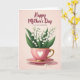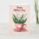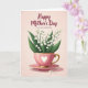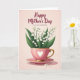 Designed with a soft, romantic touch, this illustration centers on a pastel pink teacup holding a small bouquet of bell-shaped white flowers with fresh green leaves, as if someone just set it down for a loved one ❤️. A white heart emblem sits on the front of the cup, and a fine lace-like trim circles the rim, adding a gentle, caring feel to the scene. The handle and base are tinted with a golden shine, and the cup rests neatly on a matching saucer. The background is a blush pink wash with light texture, giving the setting a calm, intimate mood like a quiet kitchen moment shared between close family or friends 👩. Soft lighting brightens the white blossoms and casts a faint shadow beneath the saucer, making the arrangement feel present and close. Near the base, a few tiny white petals are scattered as if they drifted down during a tender pause. Across the upper area, a flowing message appears in a darker pink tone, centered above the flowers. Small white petals dot the lower foreground beside the saucer on the blush-toned backdrop.