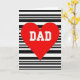 This card shows a large red heart centered on the front, set against horizontal black-and-white stripes that run across the whole background. Inside the heart, the word “DAD” appears in thick white letters, easy to read and placed right in the middle. The heart feels smooth and solid, and it stands out strongly against the striped backdrop. The stripes add a steady, graphic look that makes the red heart feel even more attention-grabbing. There aren’t any characters or extra objects, just a simple design that keeps the focus on love for your dad. It feels meaningful because it says what you want to say without a lot of extra fuss—just a clear message of affection ❤️. It’s a sweet way to show appreciation, whether you’re close by or sending love from far away 🥰.