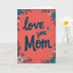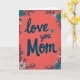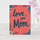 This greeting card centers on the words “love you Mom” written in deep teal, with rounded letters and a light striped texture. The message sits right in the middle, easy to read, and it feels like a direct note from the heart ❤️. Behind it is a coral background with fine vertical lines and tiny white speckles that make it look a bit like textured paper. Around all four edges, a floral frame wraps the card with teal flowers that have small orange centers, plus white blossoms, green leaves, and little buds. A sweet detail is the small striped teal heart used as the dot over the “i” in “you,” which adds an extra hint of affection 🥰. The colors are warm and calming, and the simple layout keeps the focus on telling Mom she’s loved. It feels meaningful because it’s both bright and gentle, like a hug in card form.